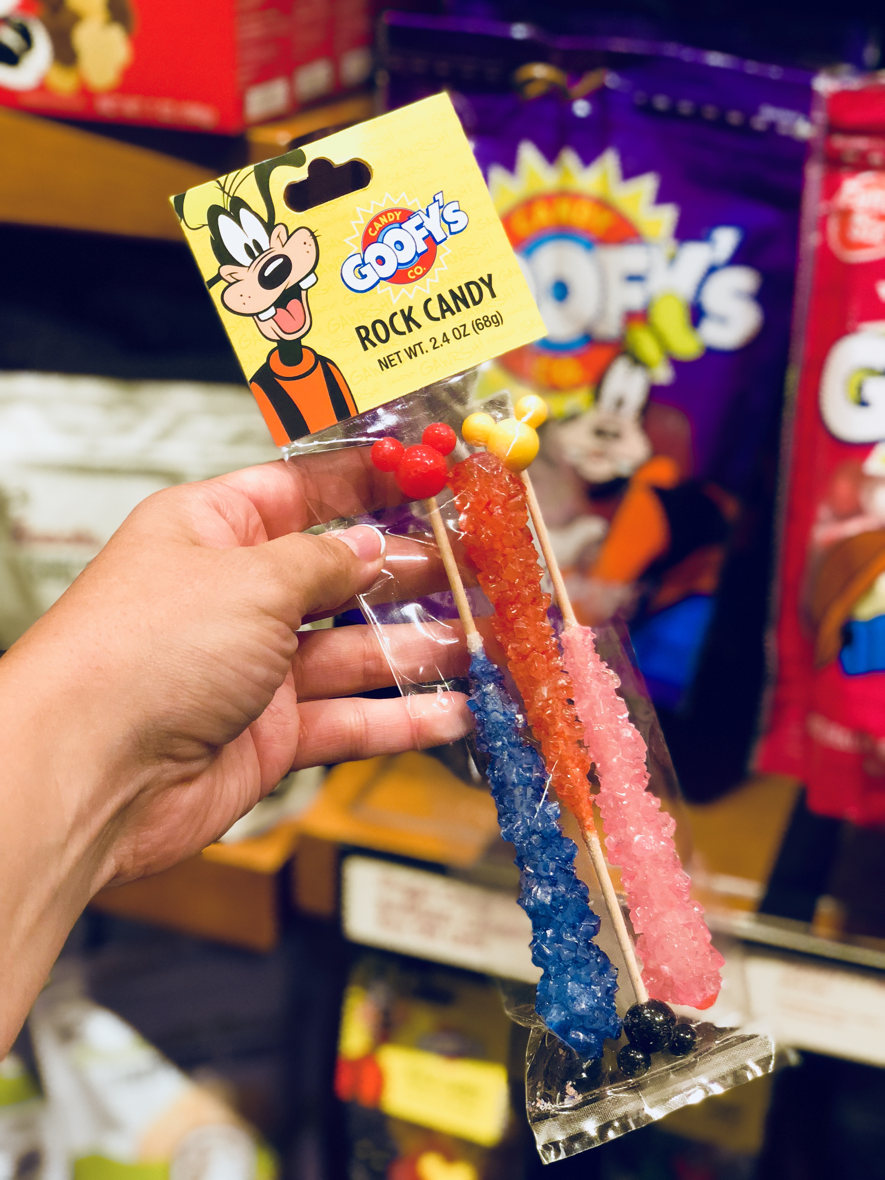 The Mickey-shaped lollipop bundle that is found around the park, can be found in this shop, the circular tie-dyed looking Mickey bundle lollipops are here, and finally Goofy’s rock candy! There isn’t a huge selection to began with, but given it’s a small hotel gift shop and there are at least a few food allergy friends that are Disney specific, I count it as a win! Cute, fun and food allergy friendly.